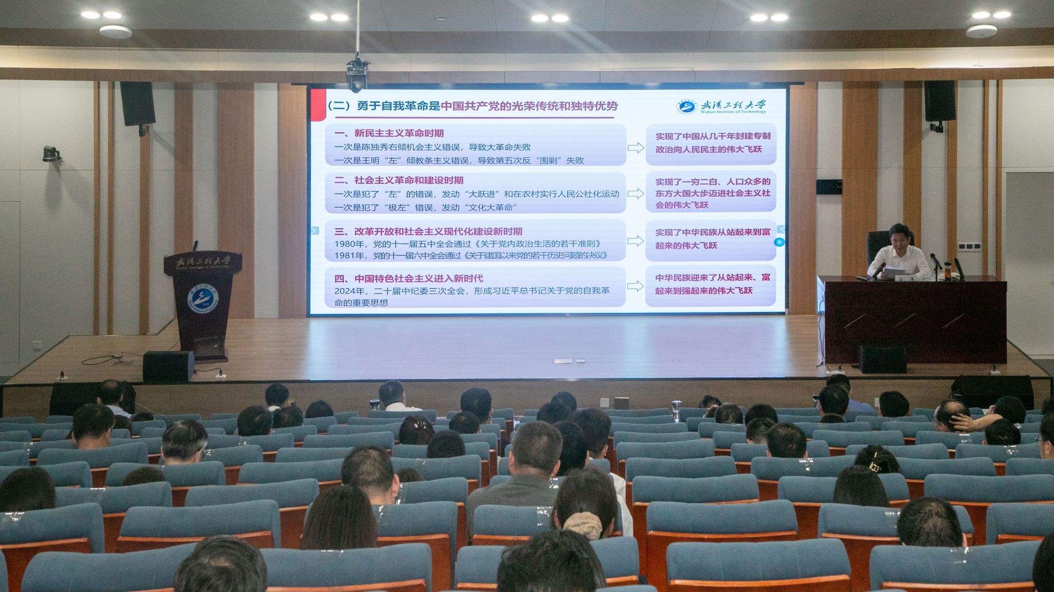 汪偉以“從《條例》修訂深刻領悟中國共產黨勇于自我革命的精神品格”為題,從“勇于自我革命是黨百年奮斗錘煉出的最鮮明的品格”“新修訂的《條例》是勇于自我革命精神的集中體現”“學校應當在發揚自我革命精神上走深走實”三個方面講授了一堂精彩的專題黨課。